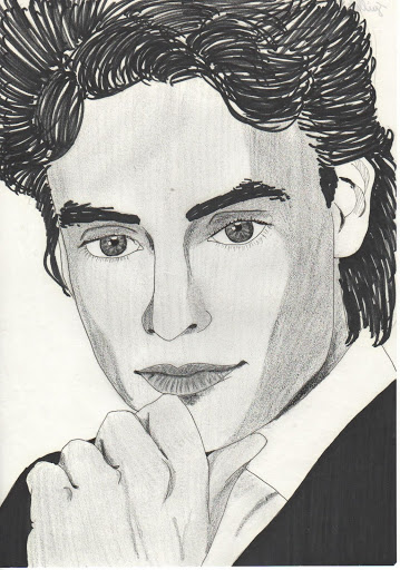 Marc Lavoine (portraits au crayon à papier et feutre noir)