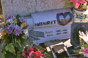 Une tuile que j’ai faite pour la tombe de mon arrière grand-mère, recouverte de vernis pour extérieur.