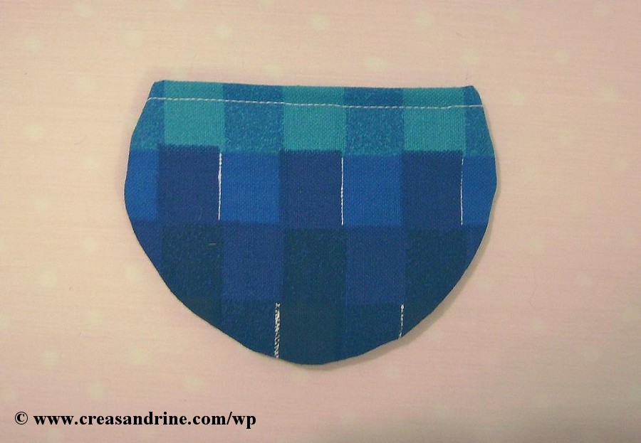 Placer les 2 tissus endroit contre endroit, et coudre en suivant la courbe du tissu. Retourner le tout et c’est fini.