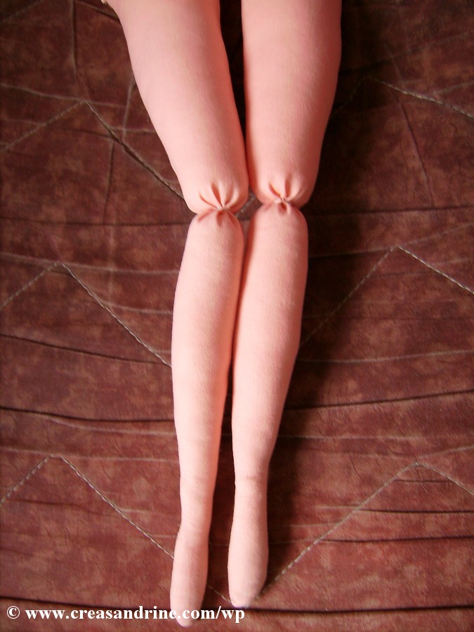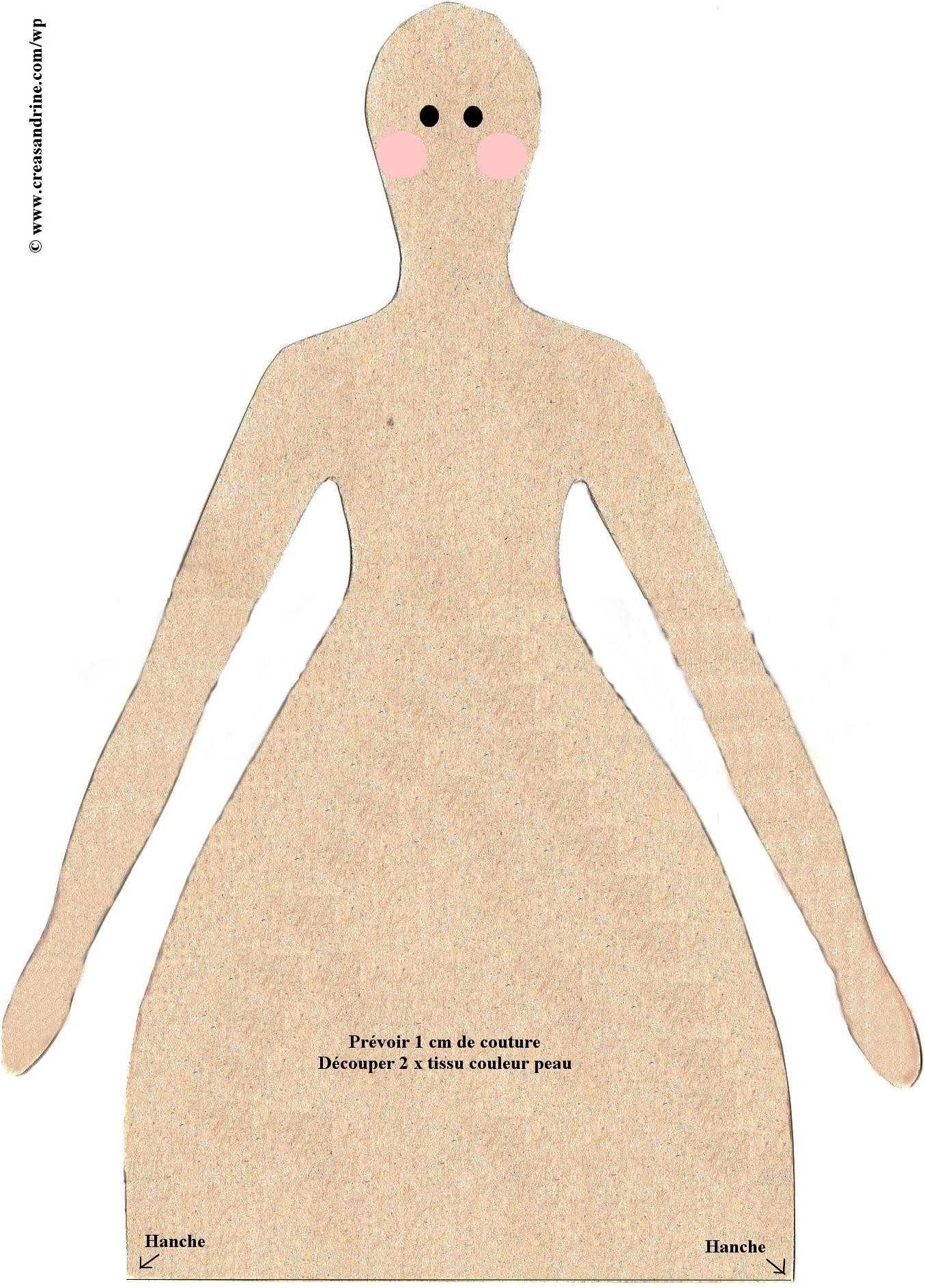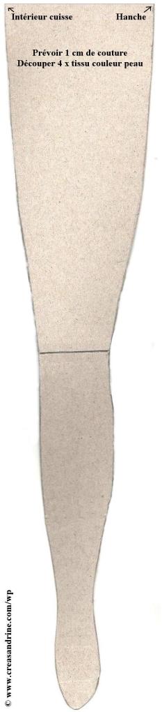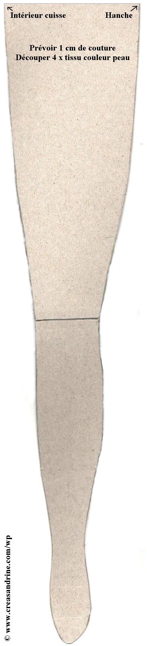 Attention : il ne faut pas ajouter 1 cm de couture pour le bas du corps, ainsi que pour le haut de la jambe. J’ai oublié de le préciser sur le patron.